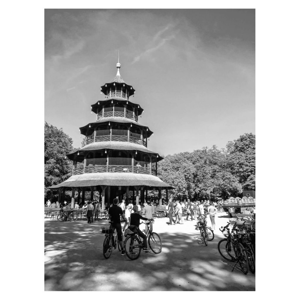 Hier sieht man den Biergarten am chinesischen Turm. Man bekommt einen Eindruck davon, wie belebt es in München im Freien ist im Spätsommer. Ich mag solche Bilder, die nicht so steril sind. Ich denke, man sieht die Lebendigkeit dieses Ortes.