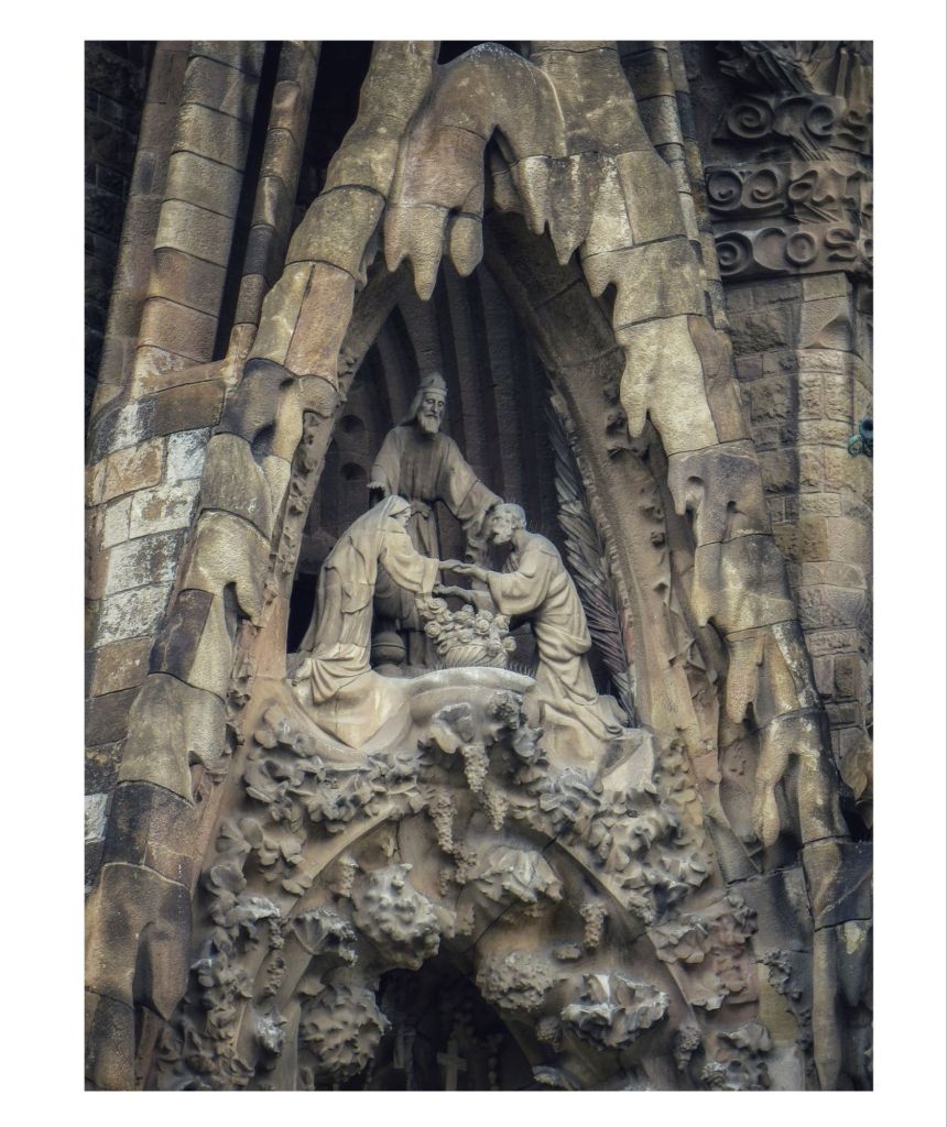 Das Ulmer Münster ist eine Kirche im gotischen Stil, sehr imposant. Aber die Sagrada Familia ist in ihrem Stil weit moderner gestaltet. Wenn man allein die Außenfassade genau betrachtet, wird auch hier der Eindruck erweckt: Man weiß nicht, wo man hinschauen soll. So unfassbar viele Details sind hier dargestellt. So viele Skulpturen, Inschriften, Fenster.