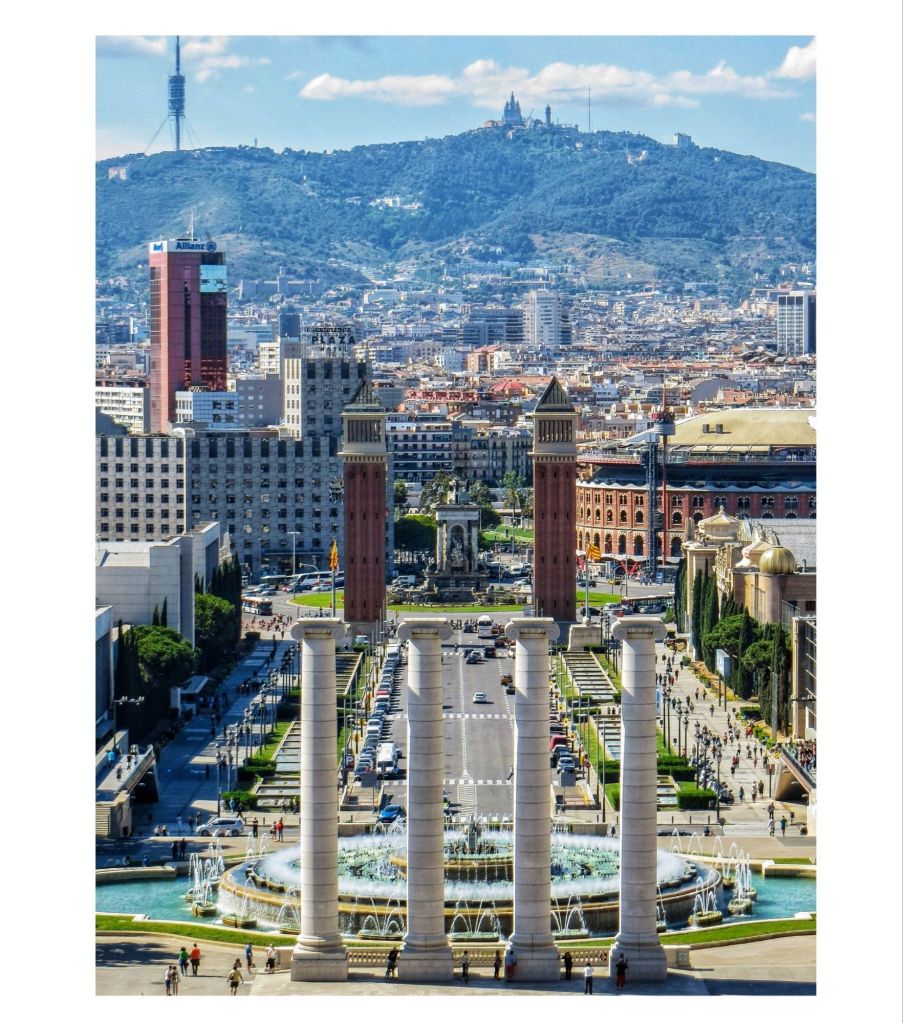 Plaça d’Espanya, Quatre Columnes und Palau Nacional